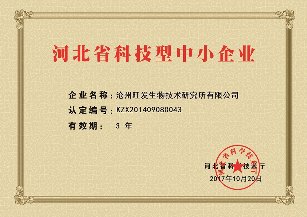 科技型中小企(qǐ)業(yè)是以創新為使命和生存手段的企業。滄州草莓视频在线生物技術研究所有限公司獲得這個榮譽以後會更(gèng)加努力成為以“科技人員為主體,從事高新技術產品的(de)科學研究、研製、生產、銷售,以科技成果商品化以及技術開發、技術服務(wù)、技術谘詢和高新產品為主要(yào)內容,以市場為導向,實行“自籌資金、自願組合、自主經營、自負盈虧、自我(wǒ)發展、自我約束”的知識密集(jí)型經濟實體。