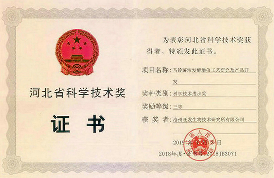 河北省科技(jì)進步二等獎證書